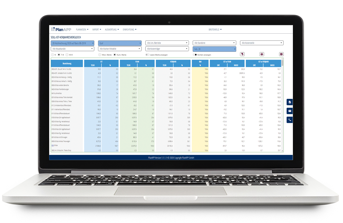 In PlanAPP sind inzwischen die ersten Praxis-Erfahrungen eingeflossen. Ab 26. Oktober 2020 erhalten Sie deshalb eine überarbeitete und aktualisierte Fassung der Planungssoftware. Diese neue Programmversion verhilft Ihnen jetzt noch schneller, die einzelnen Geschäfts-Bereiche Ihres Autohauses zu analysieren und mögliche Schwachstellen aufzudecken.